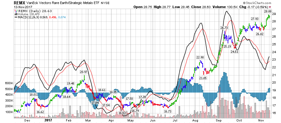 המגמה השורית כפי שנראית בחלון הזמן הקצר מטעה כי במבט ארוך יותר נראית מגמה דובית ולמעשה רק מעל שער 33 דולר תהפוך לשורית ארוכת טווח יומית. למרות האמור בגרף מתקבל חיזוק עם פתיחת מרווח צמיחה חדש במתנד ה-MACD לתעודת הסל וזאת לאחר שכבר צמחה התעודה כ- 34% בשלושת החודשים האחרונים.