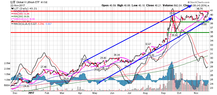 גרף תעודת הסל צמחה השנה כ-42% לאחר שהפכה לשורית לאחר מעבר בשער 22 דולר. בתנועה היומית יש סיכוי לירידה עד שער 37 דולר. לפי התעלה הצומחת שצירפתי נראה שהגרף עומד לצמוח בתוך התעלה. במתנד ה-MACD עוד מהלך מתקן מסיים ויכול להיות שתחל צמיחה מהמפגש בין הממוצע הנע המהיר והאיטי.