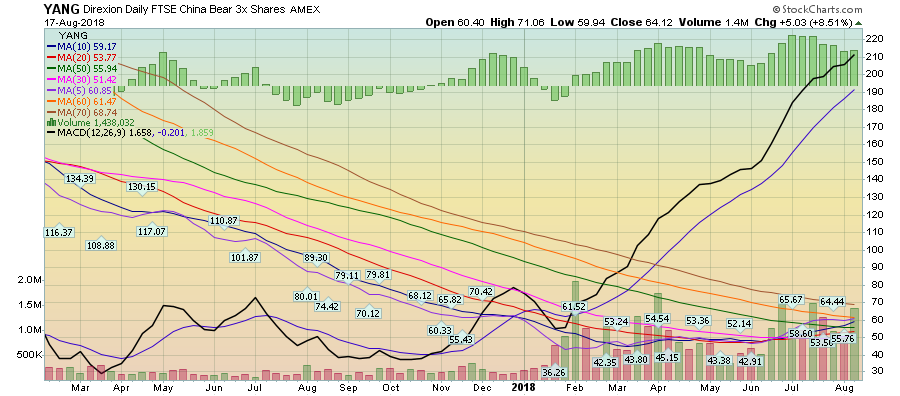 מניתוח תעודת ה-ETF - YANG סין שורט פי 3 ניתן להבחין בגרף שבועי ע"פ שנה וחצי -