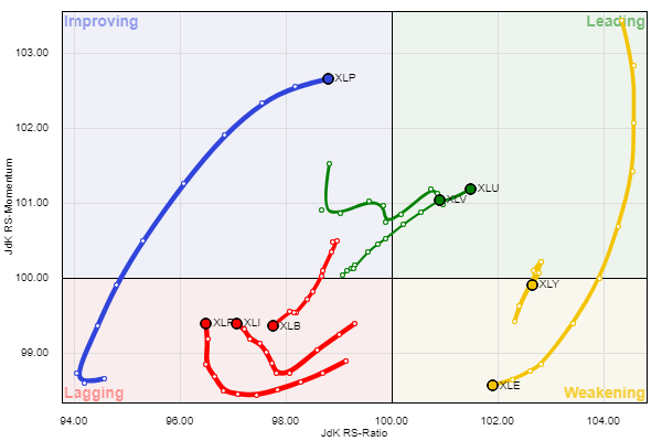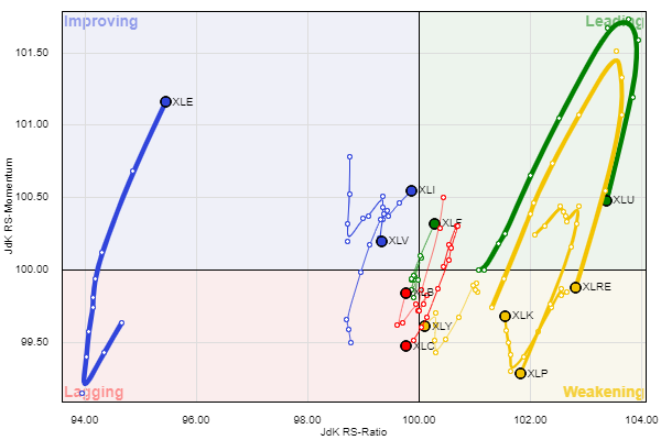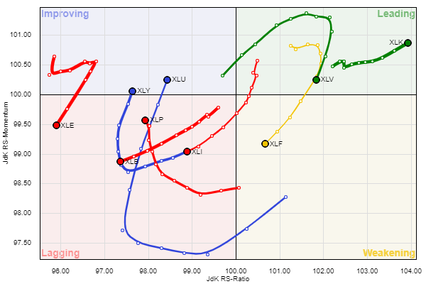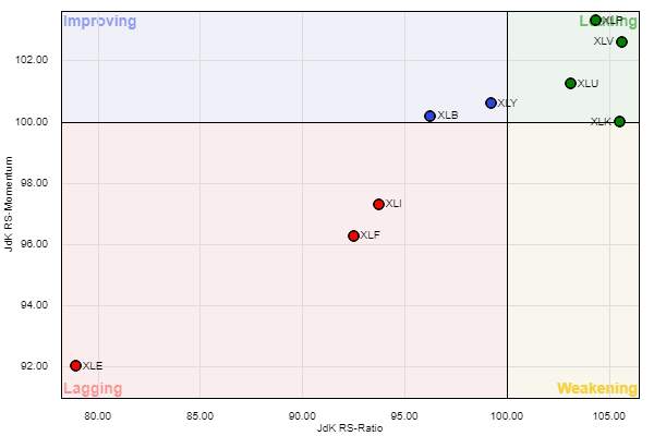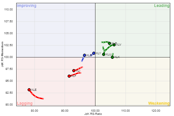 הסקטורים המובילים הינם הבריאות XLV הטכנולוגיה XLK הצרכנים XLP והשירותים XLU
