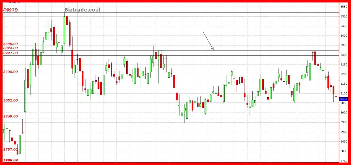 בסה"כ זהו טווח דשדוש כפי שכבר צוין, על כן ישנו צפי לתמיכה כאן ב 3050 , אבל שבירתו כמובן יחמיר את מצב הגרף,