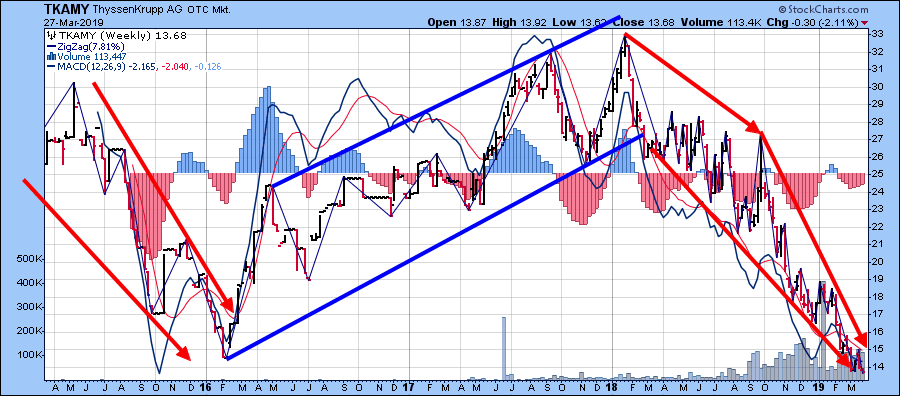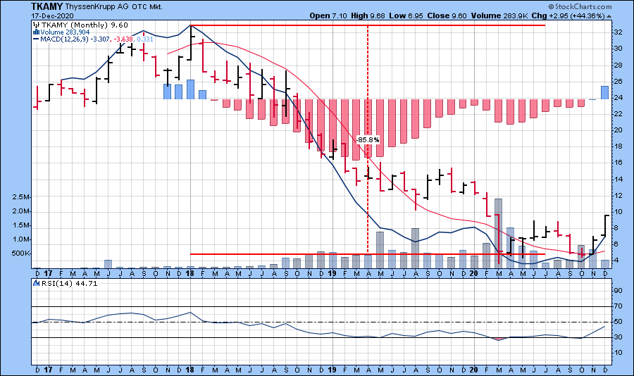 מתנד ה-RSI החודשי עדיין בגזרת השורט. במתנד ה-MACD ההיסטוגרמה הכחולה מתארת את תנועת הלונג אחרי מהלך שורטי ממושך של כמעט שלוש שנים וירידה של כ-80%. רק מעל התנגדות ברמת ה-12.5 דולר המגמות הקצרות יהפכו שוריות ומעל 16 דולר יש סיכוי למגמות הארוכות להפוך לשוריות.