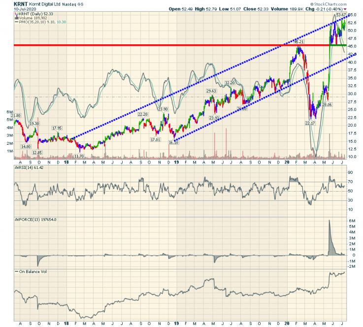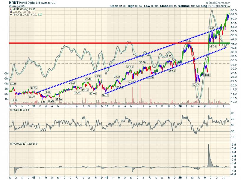 תנועת העמודות בגרף מביעים מהלך צומח ותנועת שורט בטווח היומי ותנועת לונג הטווח השבועי והארוך. המגמה הראשית שורית. קיימת תמיכה באיזור ה-45 דולר. מתנד ה-RSI בגזרת הלונג ברמת ה-60% ועל פי מתנד ה-FORCE תנועת המניות נראית די מדשדשת. במתנד ה-OBV יש עליה בנפח ז"א תנועת הלונג תוך כדי צמיחה. למרות התבנית המשולשת לצמיחה שנוצרה ממאי רמת המחירים הנוכחית תישמר בינתיים בטווחים הקצרים. בניתוח ארוך טווח ננתח בהמשך.