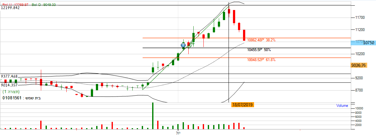 על פי פיבונאצ'י המניה מבצעת תיקון מינימלי ויורדת עד ל-% 1/3 של הגבול שהוצב בגרף,