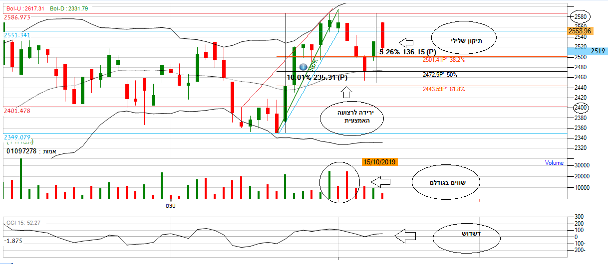 לאחרונה נראה התנגדות משמעותית משער 2400. אומנם התנועה נעה בתוך תעלה עולה והשערים סימנו שער יעד של 2580 אך זו עשתה תיקון שלילי כלפי מטה עד שער 2450. העמודה נשענת כעת על רמת תמיכה של 2350 ₪.