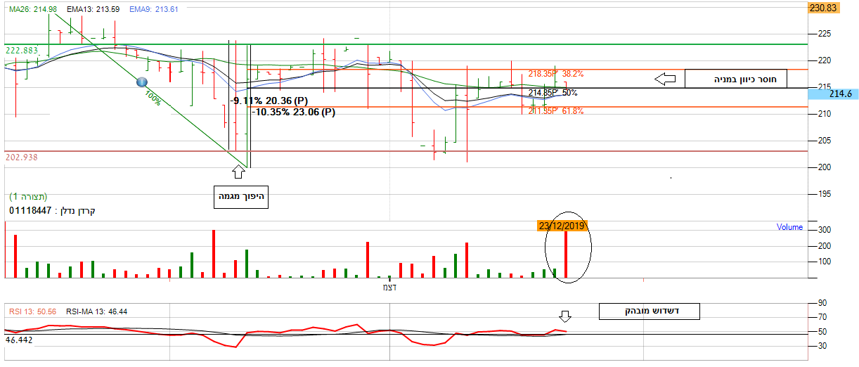 - מתנד ה RSI שמייצג חוסר כיוון ברור של המניה בכך שנע באזור ה 50 נקודות מתחילת החודש.