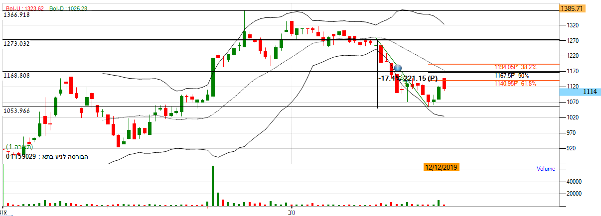 [2019-12-12 13:41:12] המנתחת: מנית הבורסה לניע בת"א - אחת המניות שהתחילה את דרכה רק לפני כמה חודשים. לכן, גרף המניה מאוד מוגבל בניתוח. לאחר שהמניה דשדשה באזור שער 1270, המניה פתחה בירידות וירדה קרוב ל 17% לשער 1050, מה שמייצג היחלשות הנייר. על פי חיתוכי פיבונאצ'י אנו נראה שלמרות שהמניה הצליחה לעלות לגבול התחתון של פיבונאצי , זו עדיין מייצגת היחלשות הנייר. *על פי חיתוכי פיבונאצ'י אנו לא נכנס כרגע למניה.