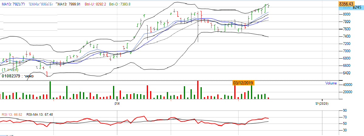 - החברה עוסקת בקבלנות בניין ותשתיות, נדל"ן מניב. המניה בגרף ראשי שורית ונראה שבכל קניה קיים רווח. אם נתבונן על מחזורי המסחר אנו נראה שכמות הקונים עצומה לעומת כמות המוכרים. מה שמסמל על מניה חיובית. המניה ממשיכה להראות גרף חיובי בכך שהינה נעה מעל לרצועה העליונה של רצועת הבולינגר , מה שמשדר עוצמה ואיתות חזק של קונים. *יתכן תיקון טכני קל של 5% אבל זו בעיקר הזדמנות קניה.