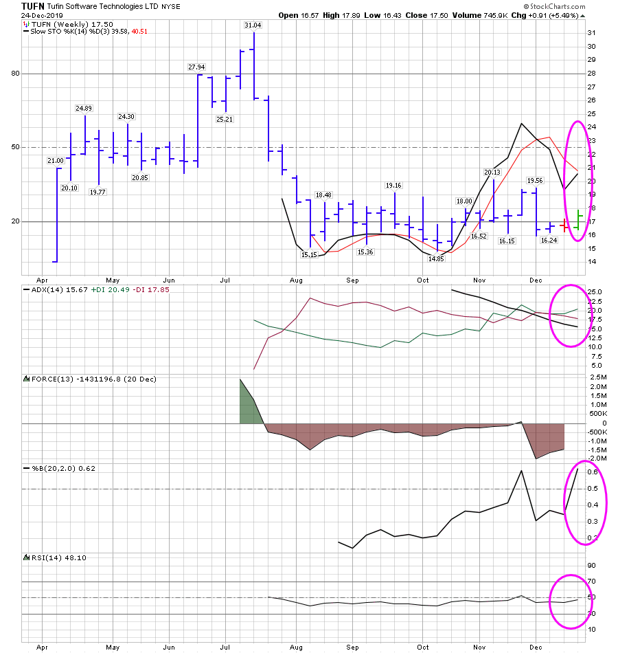 החברה שהונפקה לפני כ-9חודשים החלה מראה סימנים ליציאה מהדישדוש ומהמגמה הדובית שנמשכת גם השבוע. לפי הנתוח מספר מתנדים כמו הסטוקסטי צופה היפוך לכיוון צמיחה, כמו גם מתנד הקטבים ADX כשהקוטב הצומח והירוק עלה לערך גבוה לתחילת מהלך של גדילה, תנועת הבולינגר הגודל מעל 0.5 ומתנד ה-RSI הניצב כעת על 48% עדיין בגזרת השורט. הגרף מראה אפשרויות ירידה לשער 16 ולמעשה מכוונת להיפוך באיזור ה-14.7 דולר. רק ב-18 דולר עשויה המגמה להפוך שורית.