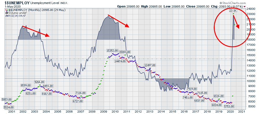 תמונת המצב כנראה קיים שינוי במגמת המובטלים לפי מתנד ה-RSI ויש כנראה התחלה של יציאה מהמצב הלא קל - בגרף 20 שנה העליתי כיצד התנהג המתנד במשברים הקודמים וכיצד נראית היציאה באמצעות חצים אדומים
