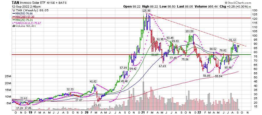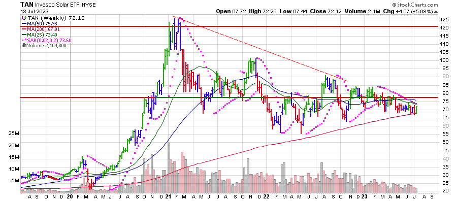 TAN עוקבת אחר מדד של חברות אנרגיה סולארית עולמיות שנבחרו על סמך ההכנסות שנוצרו מעסקים הקשורים לשמש.
