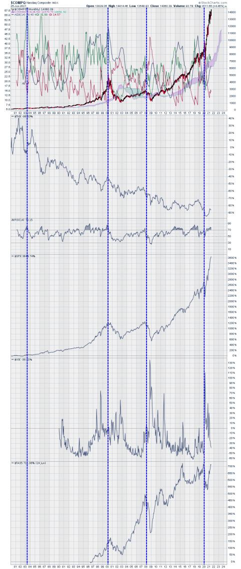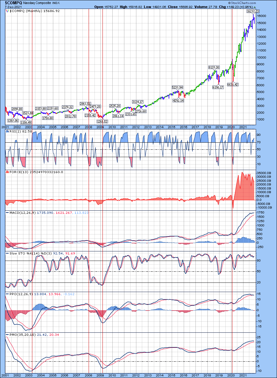 בגרף רב שנתי 40 שנים במתנד ה-MACD ו-FORCE נראית המגמה השורית. המדד צומח כבר כשנתיים באנכיות רבה אך רק כעת במתנד ה-FORCE נראית יציאה קלה של הון.