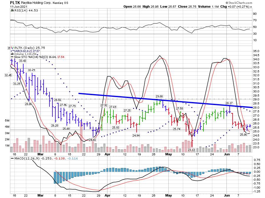 בגרף יומי של ארבעה חודשים מההנפקה נראית מגמה דובית. מתנד ה-RSI בגזרת השורט, וכך גם מתנדי מגמה נוספים. מתנד הסטוקסטי עוד לא החל לבשר נכונות לחדש את הצמיחה. קו המחבר את שיאי השערים טרם נחצה וכנראה עוד אין בשורה.