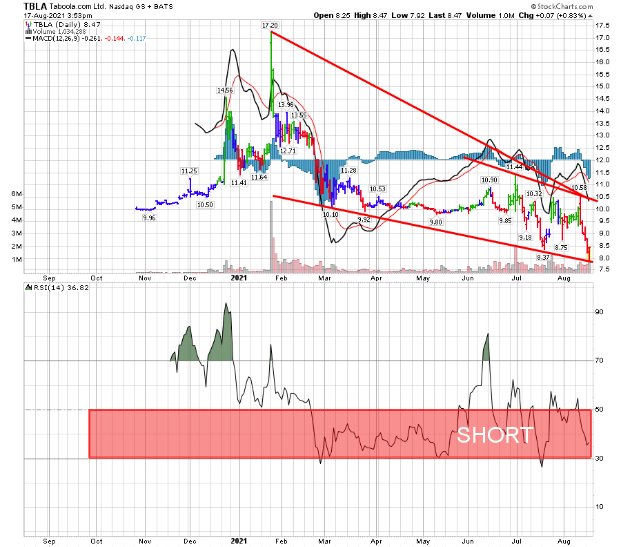 המגמה הראשית דובית והתנועה הנוכחית מקבלת גיבוי שורט ממתנדים ה-MACD וממתנד המגמה RSI הנמצא ברמה של 36% עמוק בתוך גזרת השורט ובתנועה בתוך התעלה. הערב נוצרה תבנית המגבירה שורט.
