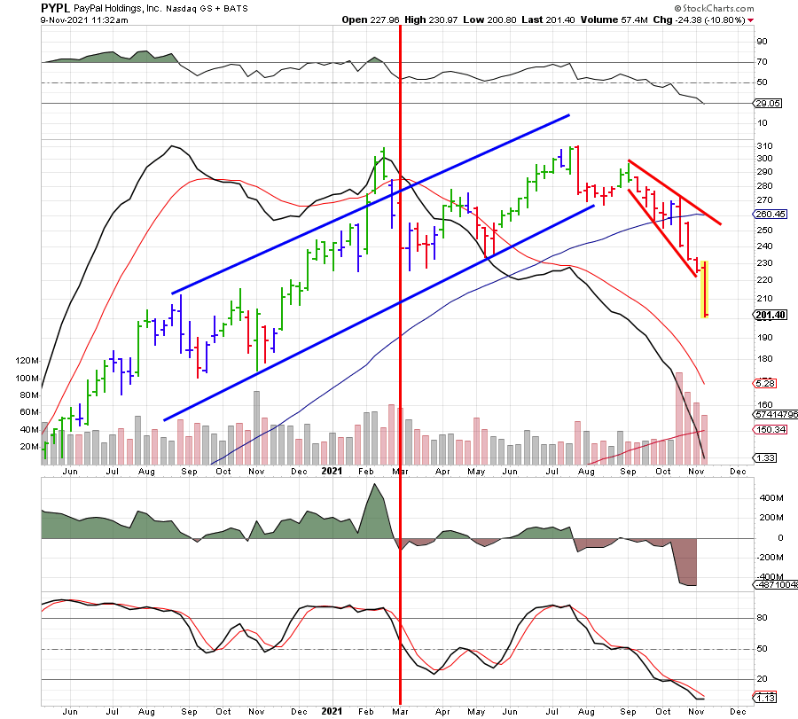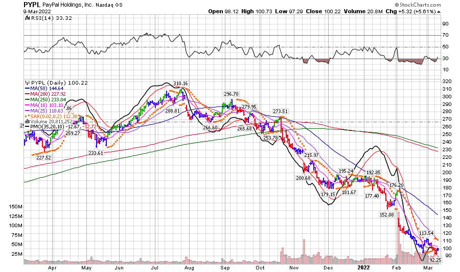 הגרף במגמה דובית. הירידה מתחת לממוצעים הנעים 200 ו-250 וגם מתחת 50, 25 ו-10 ממחישה את עומק הירידה. מתנד ה-RSI עמוק בגזרת השורט. החזרה לשוריות רק מעל 180 דולר. התנועה בגרף מכוונת לעבר שערי ריצפה באיזור ה-70 דולר.