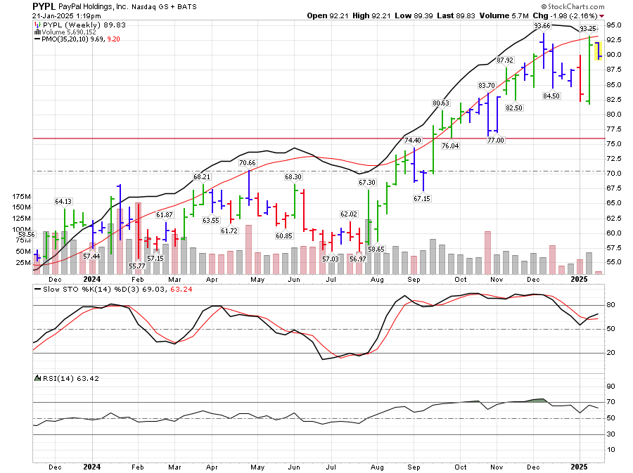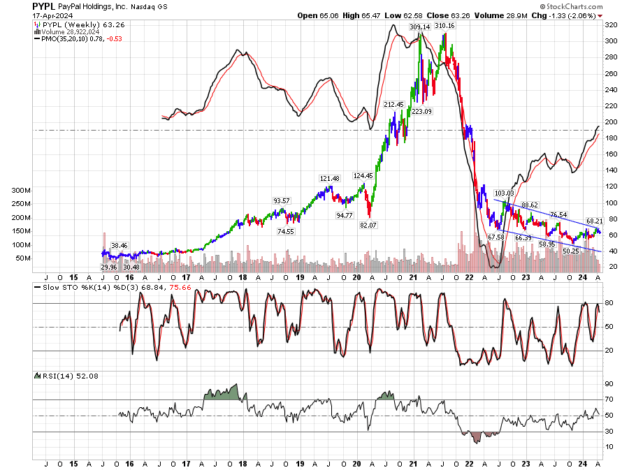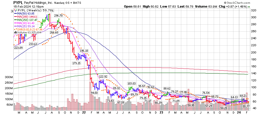 המגמה הראשית שבועית וארוכה דובית, אחרי שירדה 18% בשנה וצמחה 3% מתחילת השנה, והיתה תכונת מציחה של 10% ברבעון האחרון, השבוע הצטרפה למגמה הכללית ואיבדה 4%. הגרף שואף לרמת מחיר של 59 דולר.