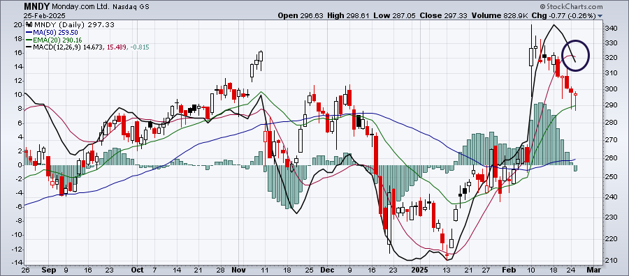מגמה ראשית יומית שורית, לפי מתנד ה-MACD מתחילה תנועת שורט (מעגל) הכיוון לאזור התמיכה 260 דולר.