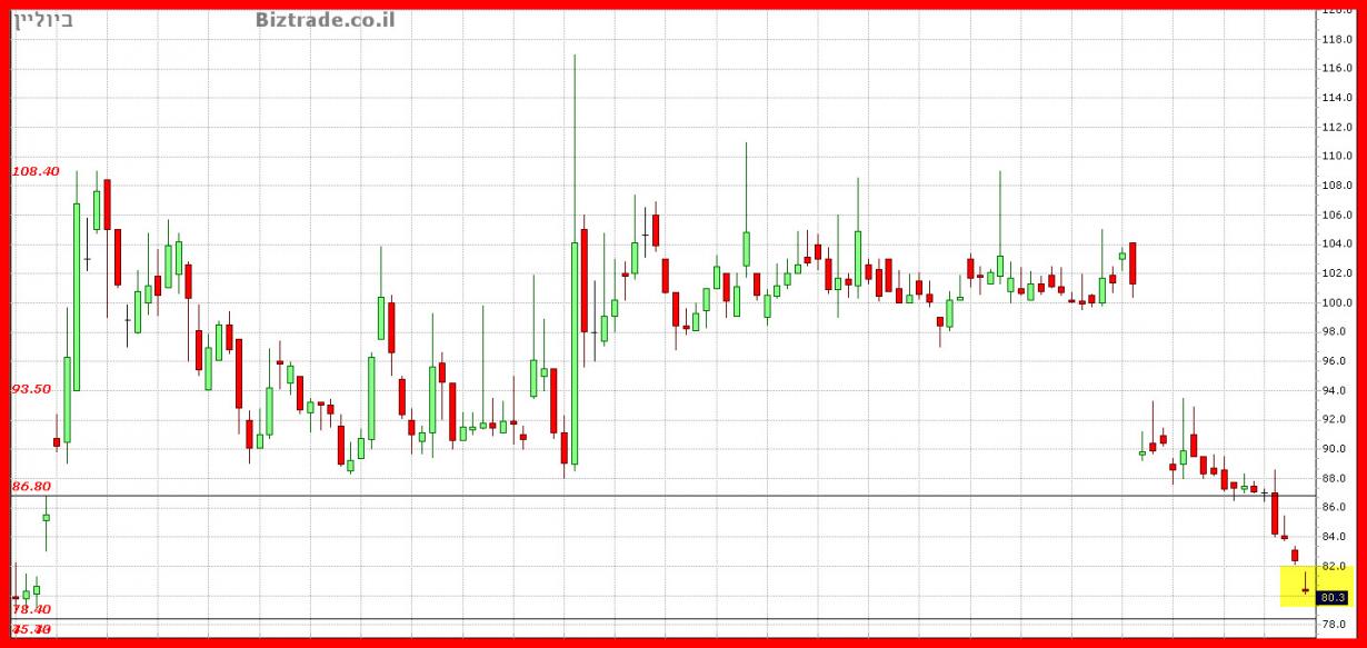 ביולייןלא מצליחה במשך 4 ימי מסחר את קו ה 108.4 , שהתנגדת באופן מדוייק . כרגע היא כבר מתחת ל100 , והתמיכה הטכנית הטובה הקרובה ב 85,