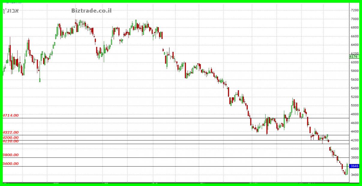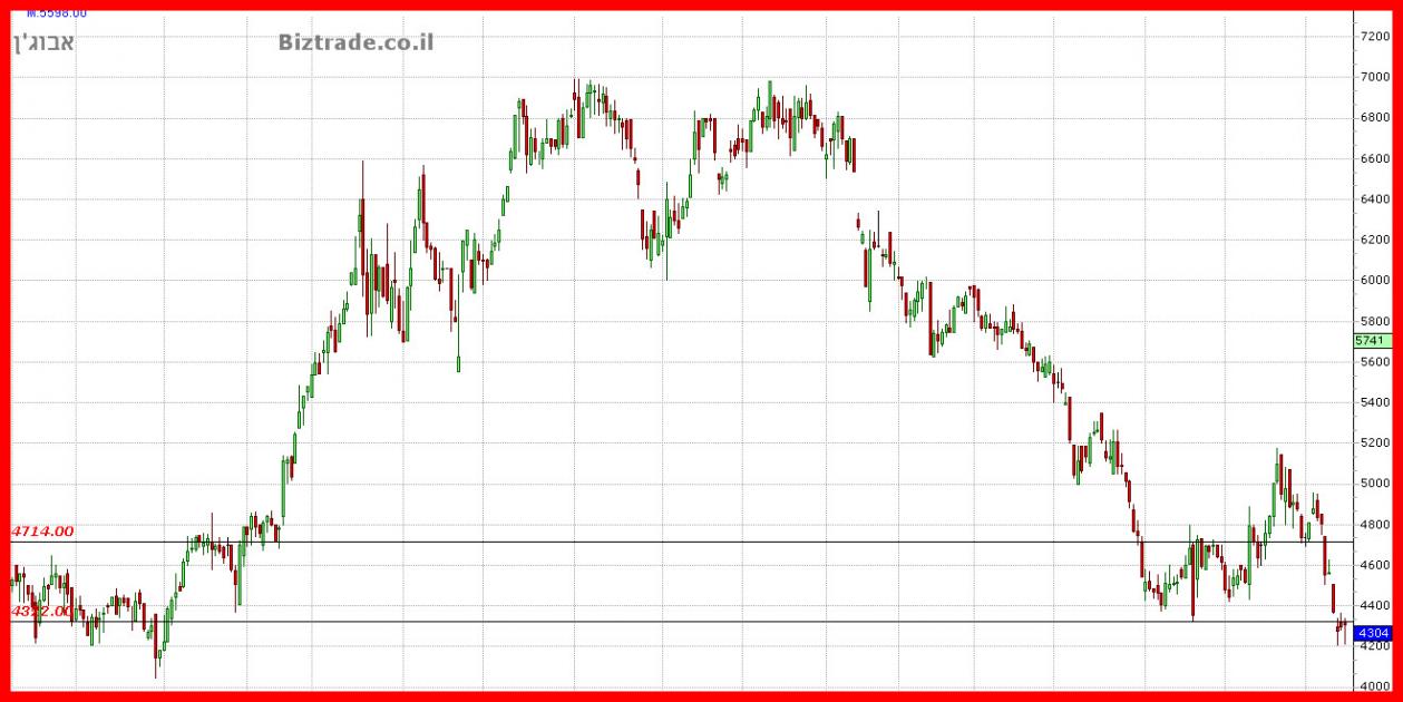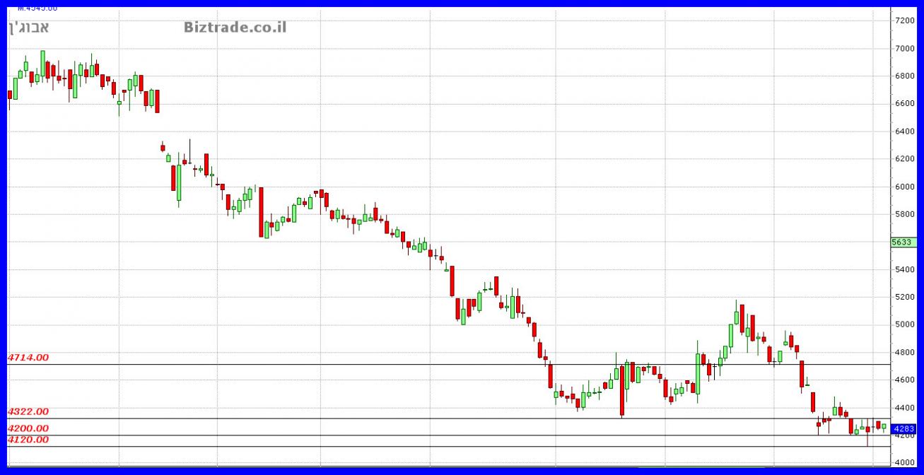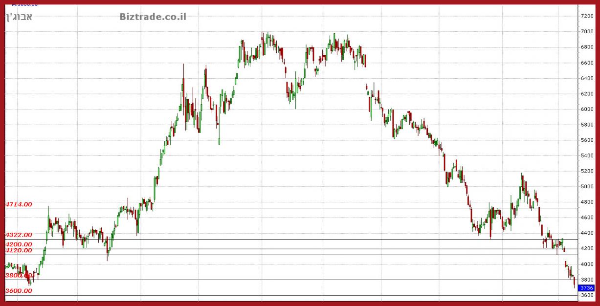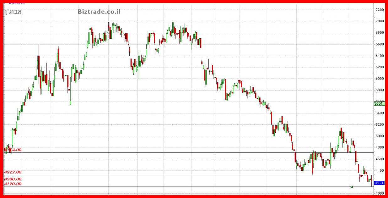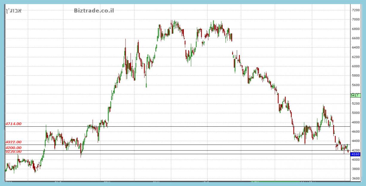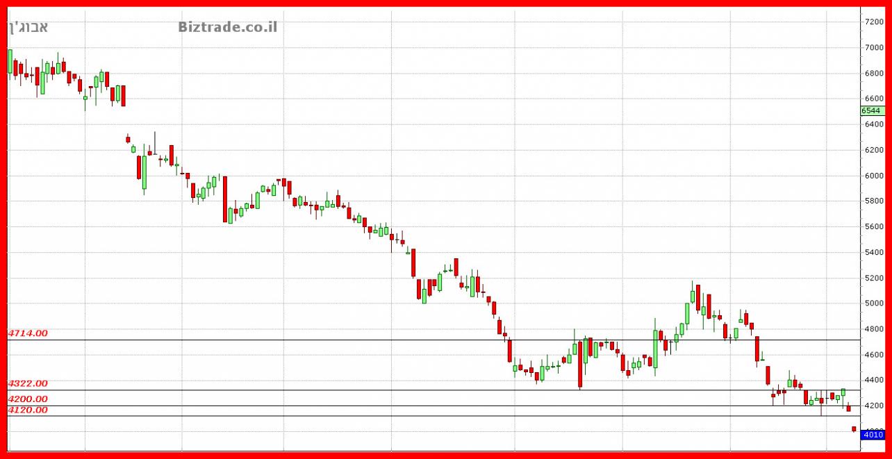 המחיר בדרך לירידה מידית של עוד 40 נק" לקראת ה 4120 ושבירתו יכולה להוריד עוד לקראת ה 4000 העגול.