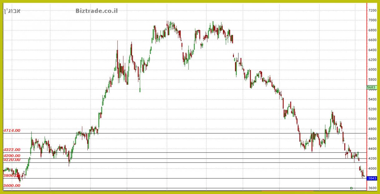 מאז שבירת ה קו ב 4200 , המחיר לא עוצר את הירידות וכבר נסחר ב 3843 ,