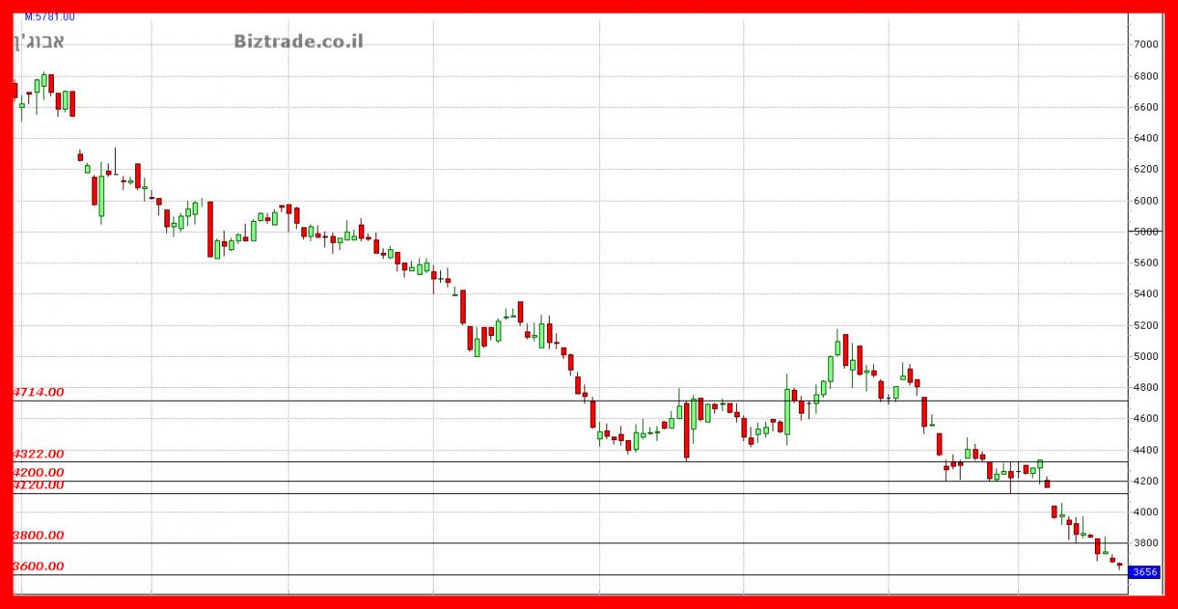 מאז שבירת ה 3800 המחיר בדרכו ל 3600 והוא עושה זאת לאט .
