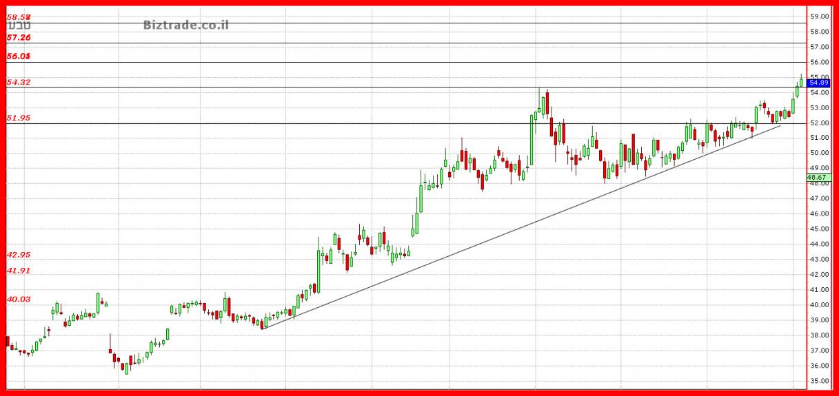 המחיר עולה מעל 2% בחו"ל, ומתקרב ל 54$.