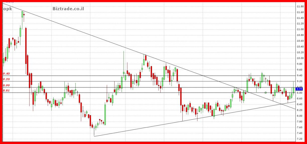 ירד לתמיכה , עלה להתנגדות והמחיר עדיין סביב ה8.8 - 9 $