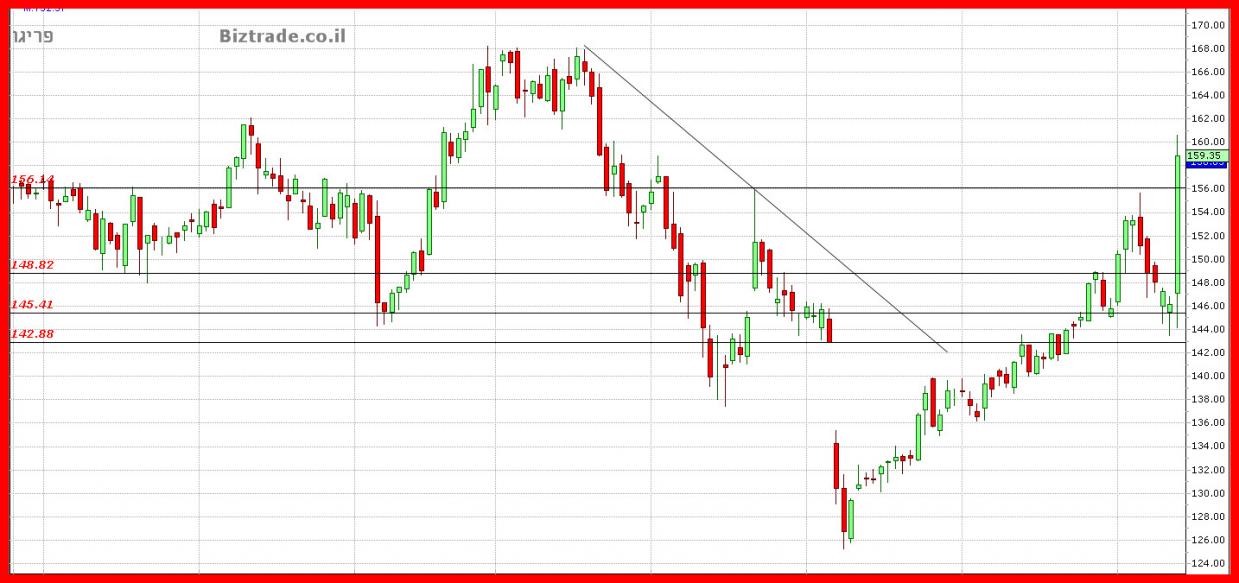המחיר עוקף את כול הגזרות ויעדים שניתנו וסוגר אתמול ב 158.85$.