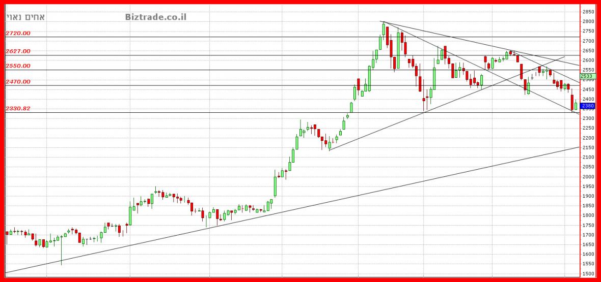 מכאן כמובן יוכל להיווצר מהלך עולה אבל סכנת שבירה של הקווים ב 2330 עדיין לא נעלמה, וזה יוכל לקראת רק עם פריצת ה 2500.