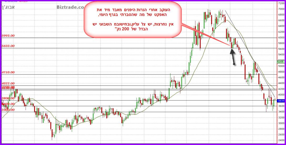 נושא הנר ה " תוחם ", שייך רק לגרף יומי , וכאשר אתה שואל לגבי הגרף השבועי, אולי חשבת שהדוגמאות הרבות והמוצלחות שהבאתי כאן ושכולם על גבי גרך יומי, תופסות גם בטווחים אחרים , אז זהוא , שלא ! הנושא הזה שהוא גם לא שייך לטכני אלא לנרות יפנים מתקדם שייך אך ורק לתחום היומי.