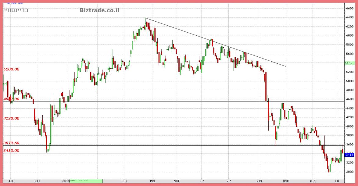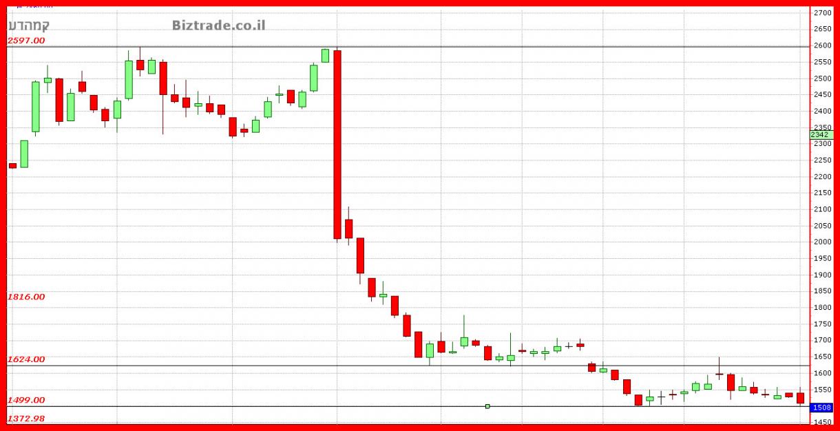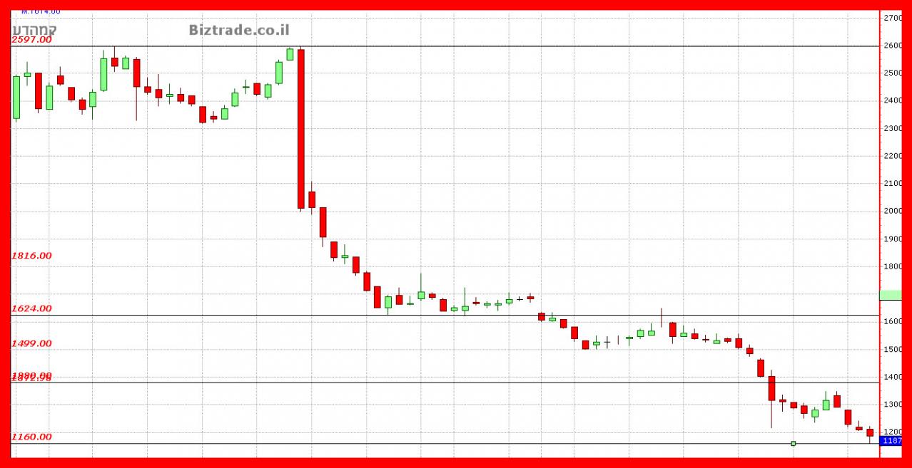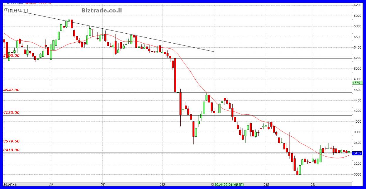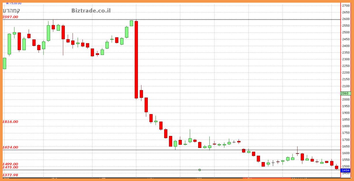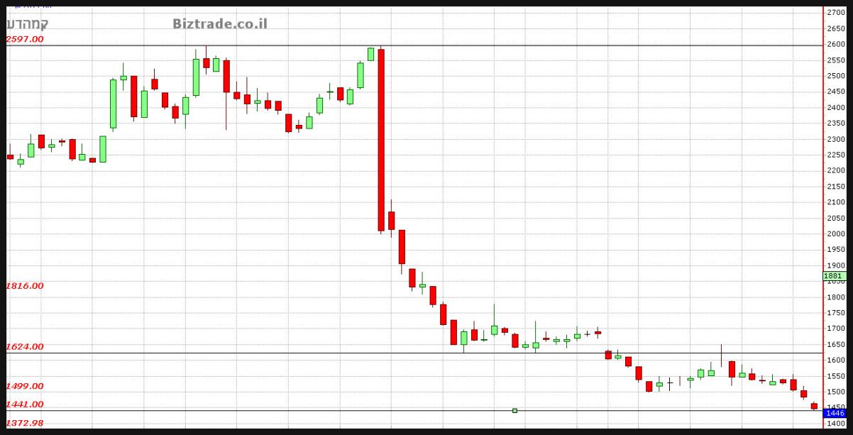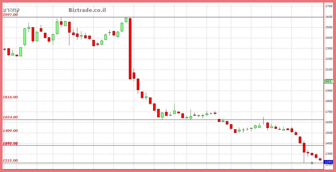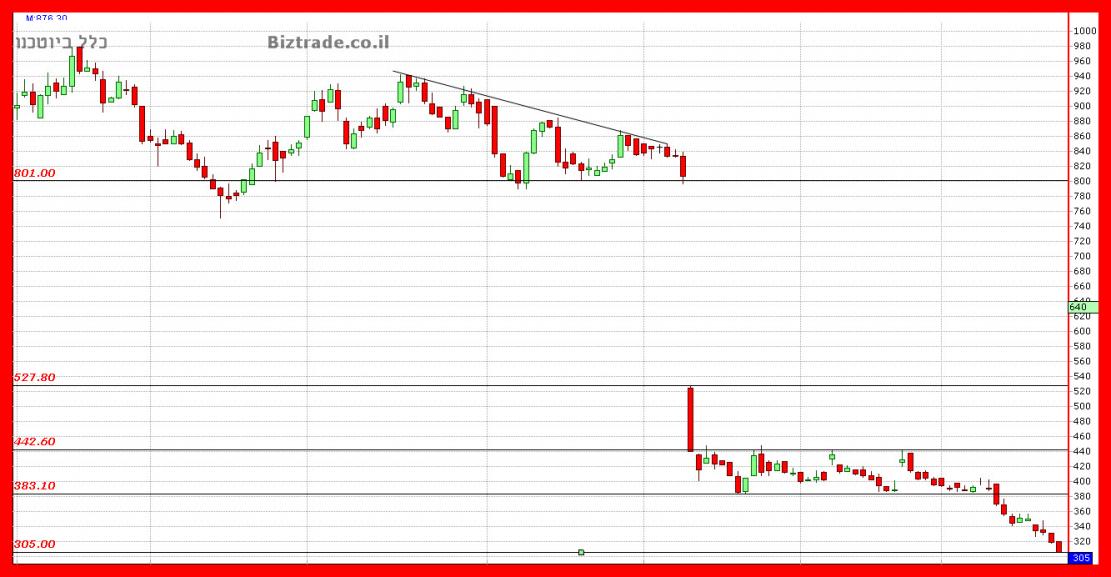 המשך הירידות חזרו מהר לגרף כאשר הדשדוש הקודם נשבר והמחיר זלג מטה כ 60 נק" נוספות.