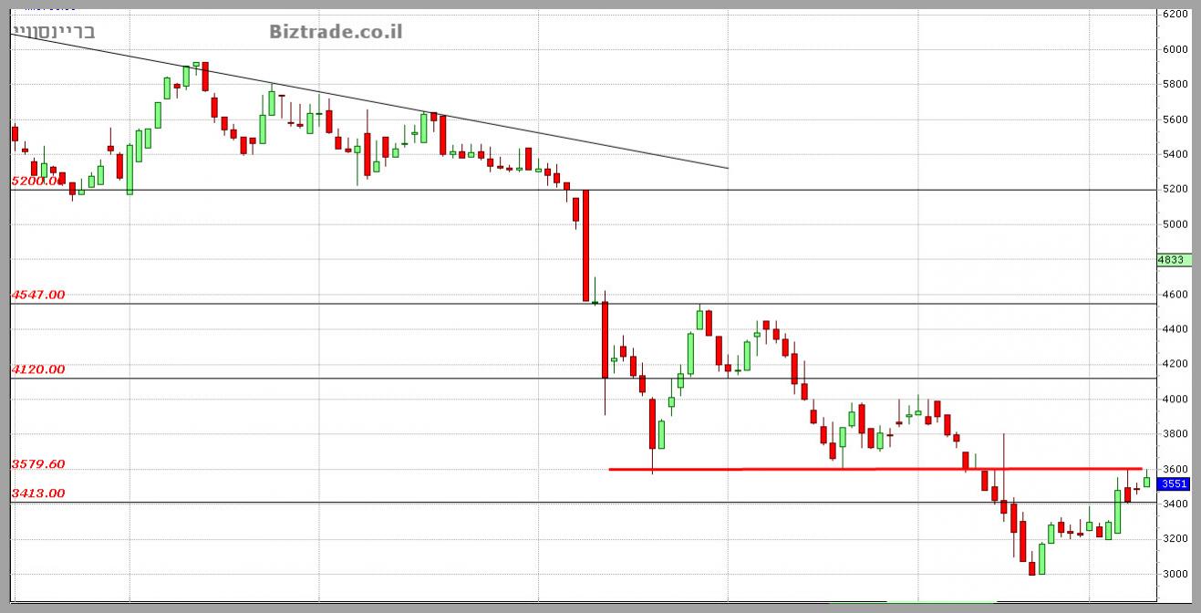 ולמרות הנר היפני היומי ה לא טוב, כול עוד המחיר מעל ה 3600= טוב להמשך.