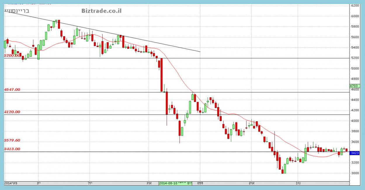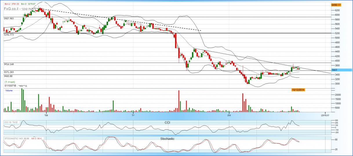 המסחר עדיין מוכיח שקו האופקי ב 3413, חשוב מאוד ועל כן המחיר כבר כ שלושה שבועות סביבו עם שבירת שווא אחת.