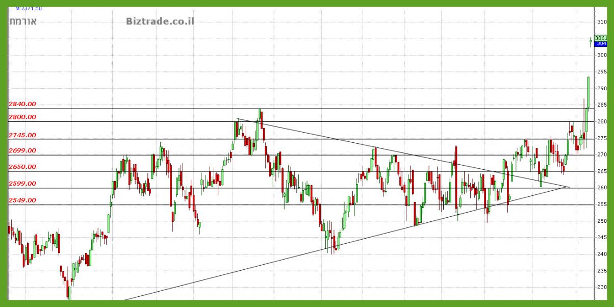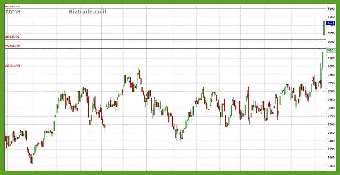 מה שמתרחש על הגרף מתאים כמובן לכול העדכונים הרציפים מאז ה תמיכה ב 2600. כאשר אתמול הגבוה ב 2850 נפרץ, והום הפתיחה היא בגפ מעלה.