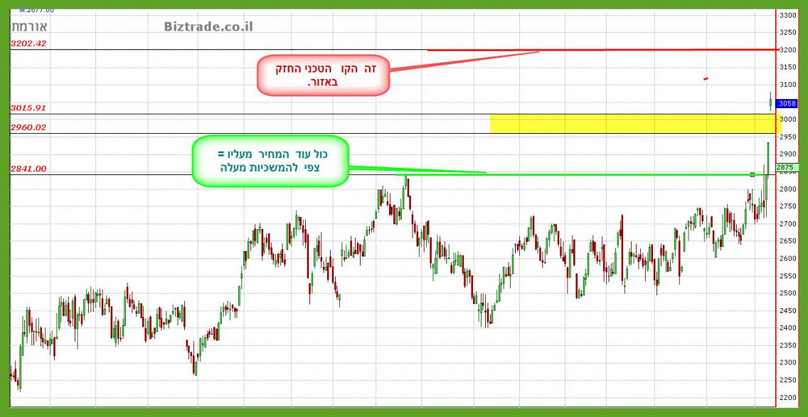 1- כול עוד המחיר נמצא מעל קו ה 2850 = חיובי להמשכיות מעלה.