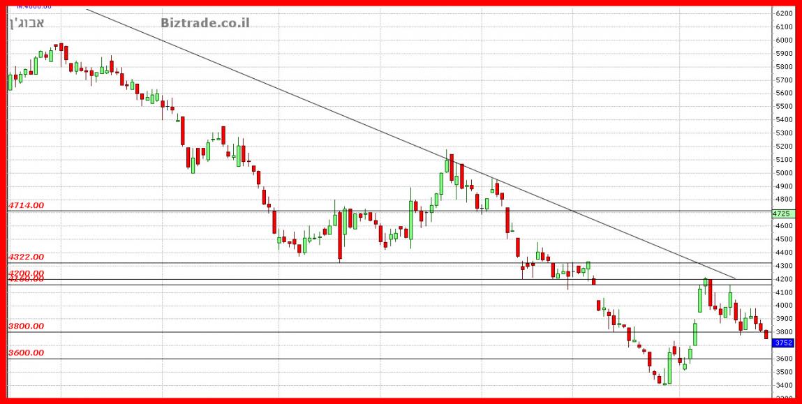 כרגע הגרף פותח במהלך יורד כאשר ה3800 הוא בהחלט יעד לבדיקה,