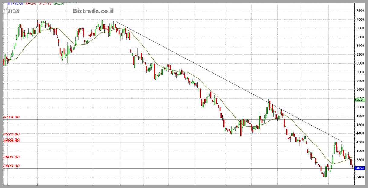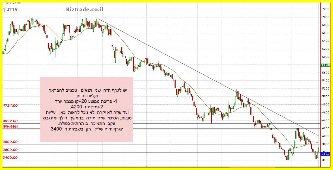 שבירה של ה 3600 יחזיר את המחיר ל 3400 כתחתית קודמת.