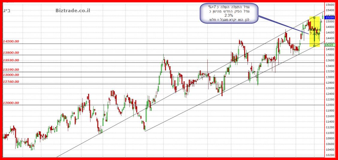 פרצה קו מגמה ראשי ארוך טווח, ועלי ידי כך הצפי הוא לעליות חדות.