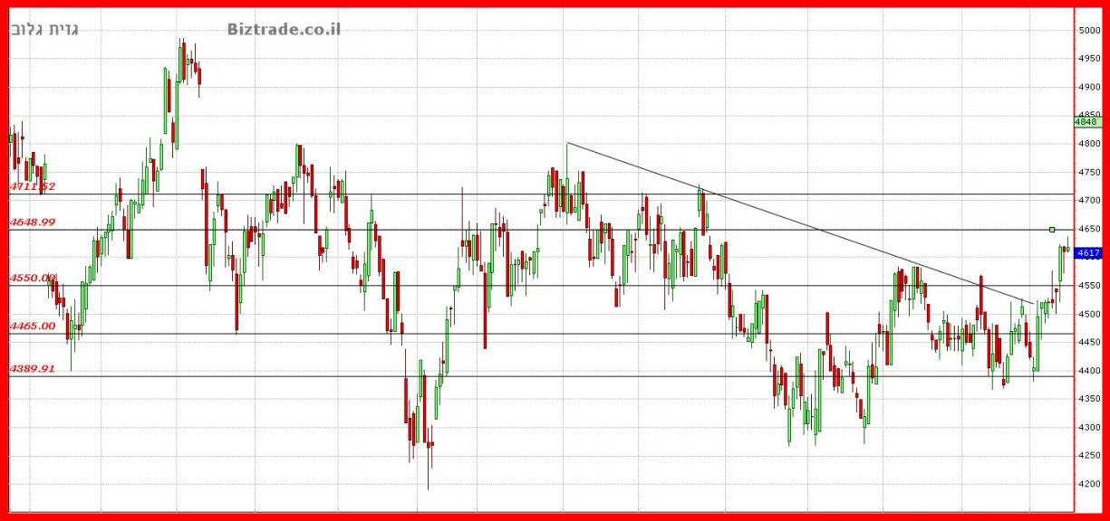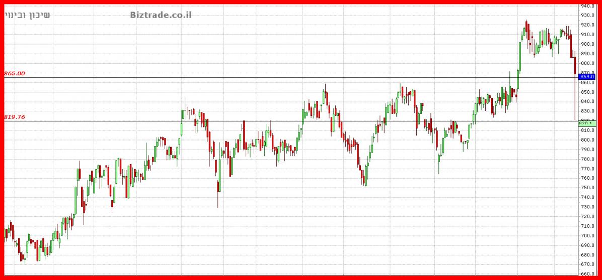 וגם נכון הוא שהקו העליון נשבר מספר פעמים והמחיר חזר או מיד מעליו או ירד בכדי ליצור את הקו הקטן!