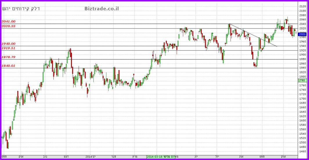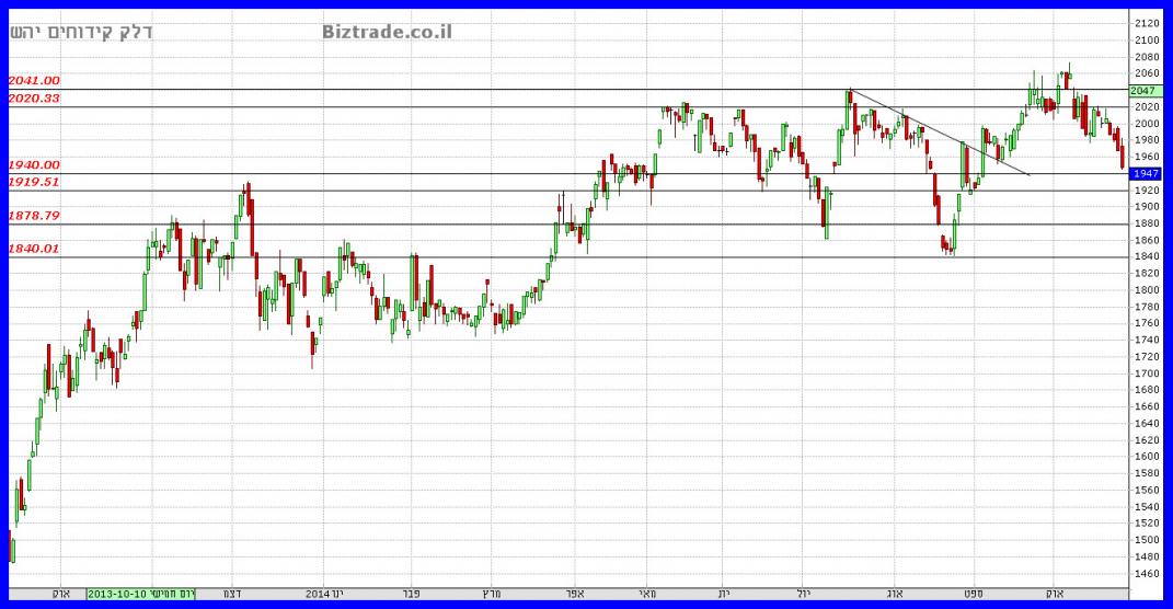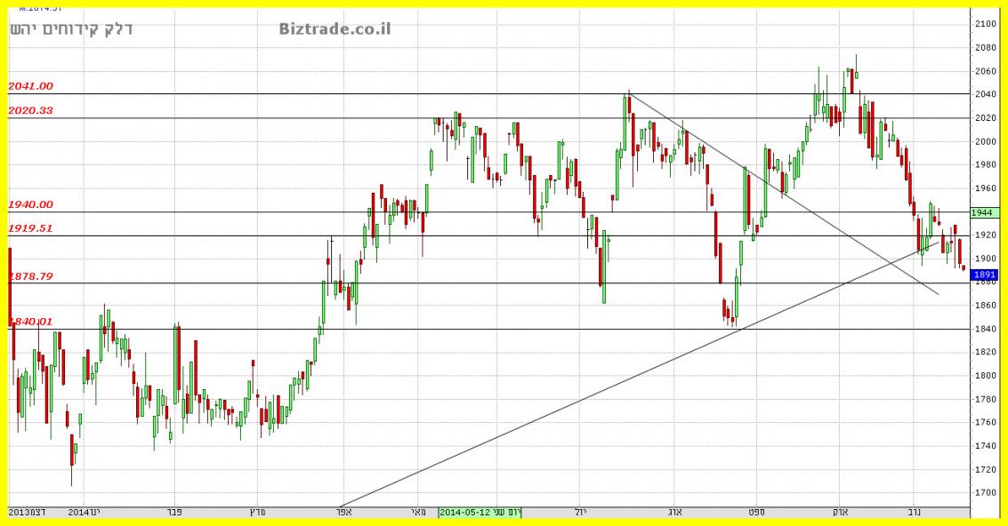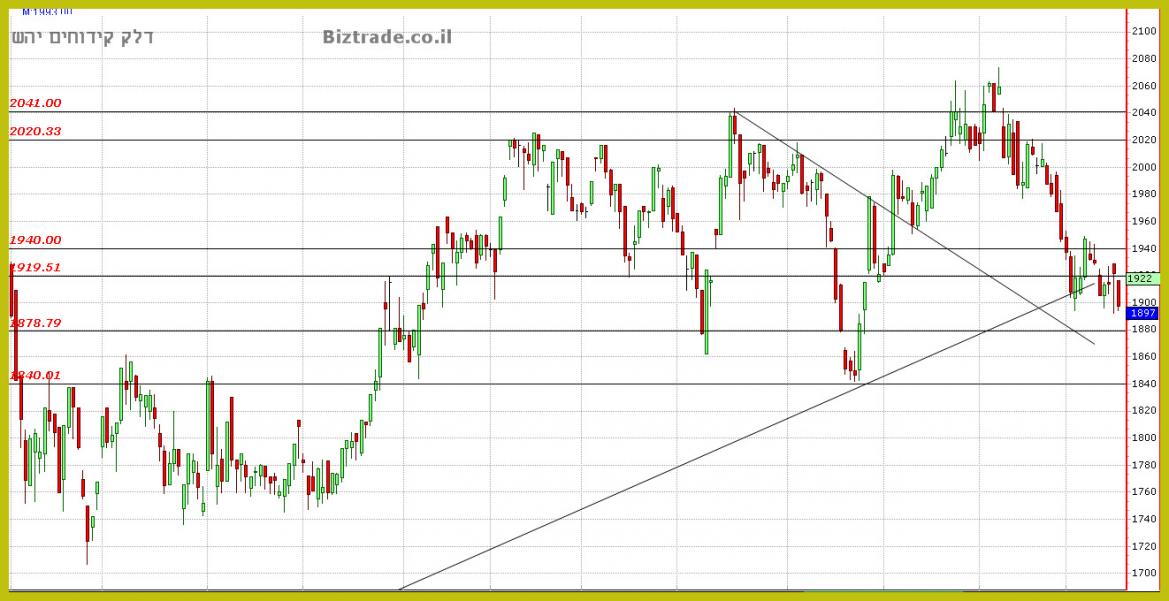 מכאן , במידה והמחיר לא יחזור מיד היום עד הסגירה ל מעל ה 1900 , אזי תיווצר סכנת ירידה ל קו ה 1850.