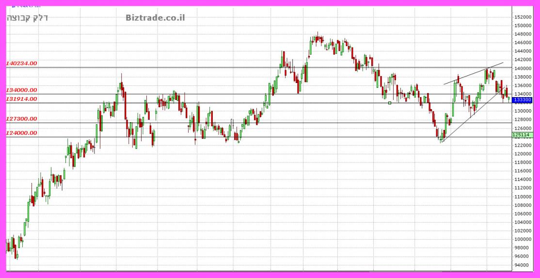 שבירה של ה 134000 ( וזה קרוב ) יוביל ל 128000 ( וגם מקרה זה יבטל את היתד )