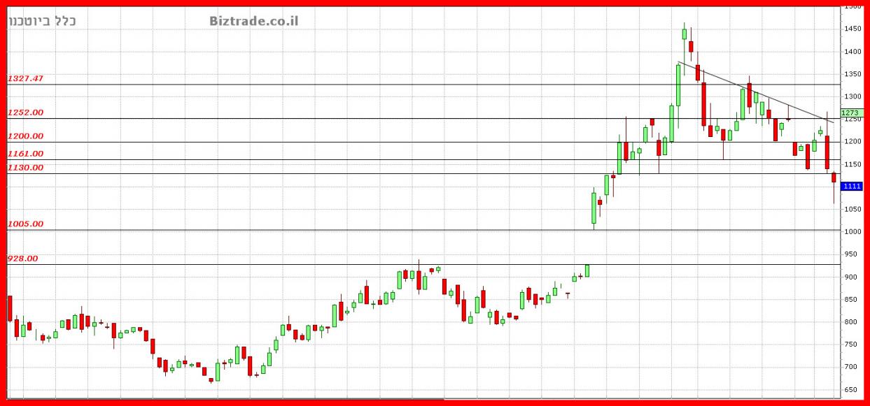 כול סגירה היום מעל ה 1130 = חיובי להמשך , ואילו שבירת ה 1100 = עדיין החולשה שולטת באזור.