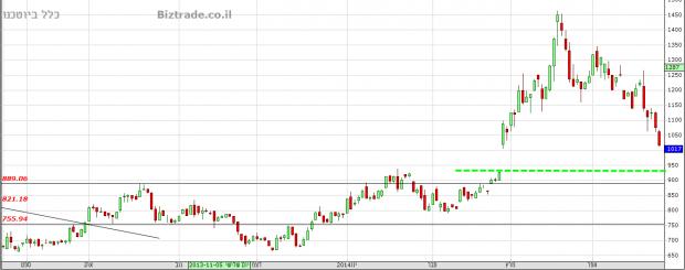 המחיר נמצא ברגעים אלה בקרבת ה 900 העגול, עם מחזור של מעל 10 מיליון ש"ח.