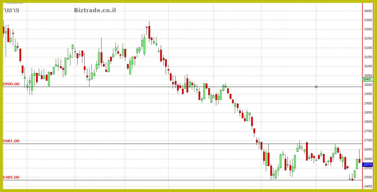 את הגרף השבועי ניתן כבר לאפיין בתור מדשדש בטווח נתון שהוא , 2485 -- 2680