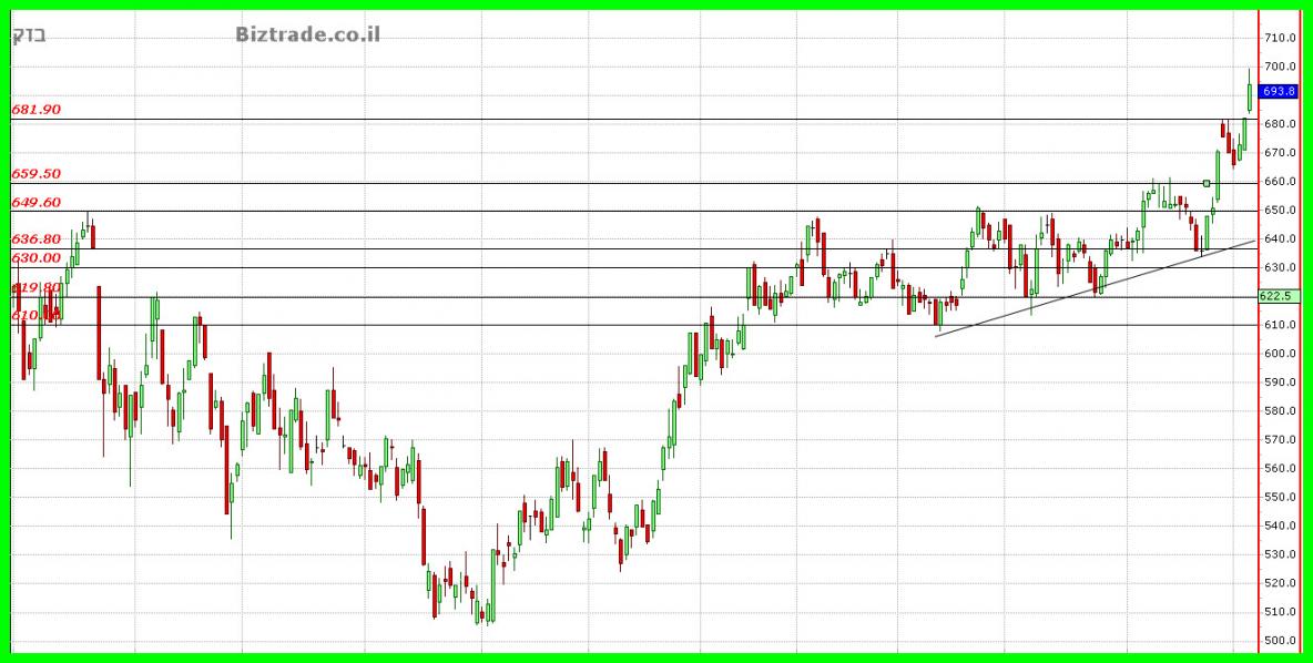 כול עוד המחיר נמצא מעל ה 650 = צפי להמשך עליות