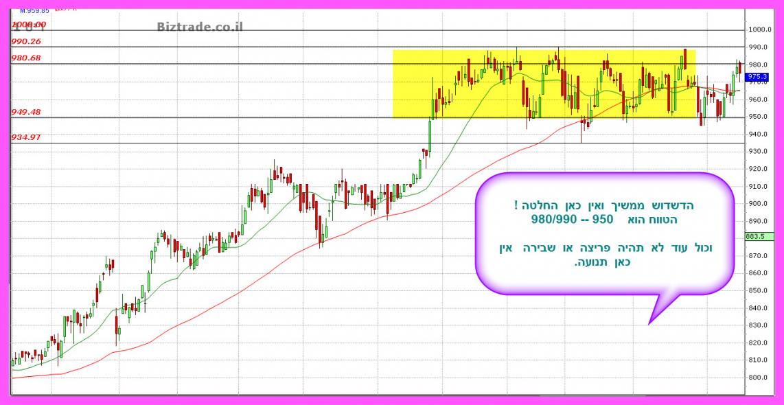 לא ממליץ כניסה מיותרת ברמות הללו, המחיר צפוי מבחינתי לשבור את ה66, כאשר 61 הוא יעד כרגע.
