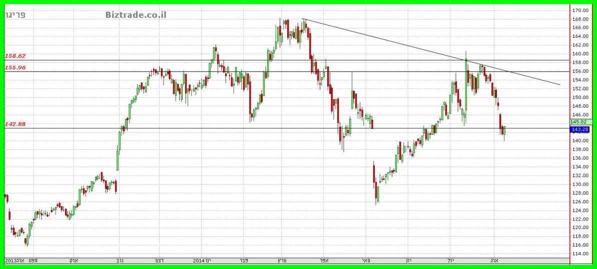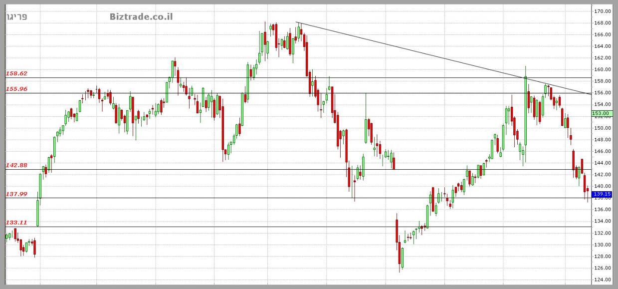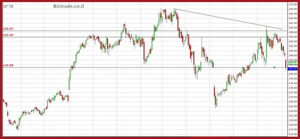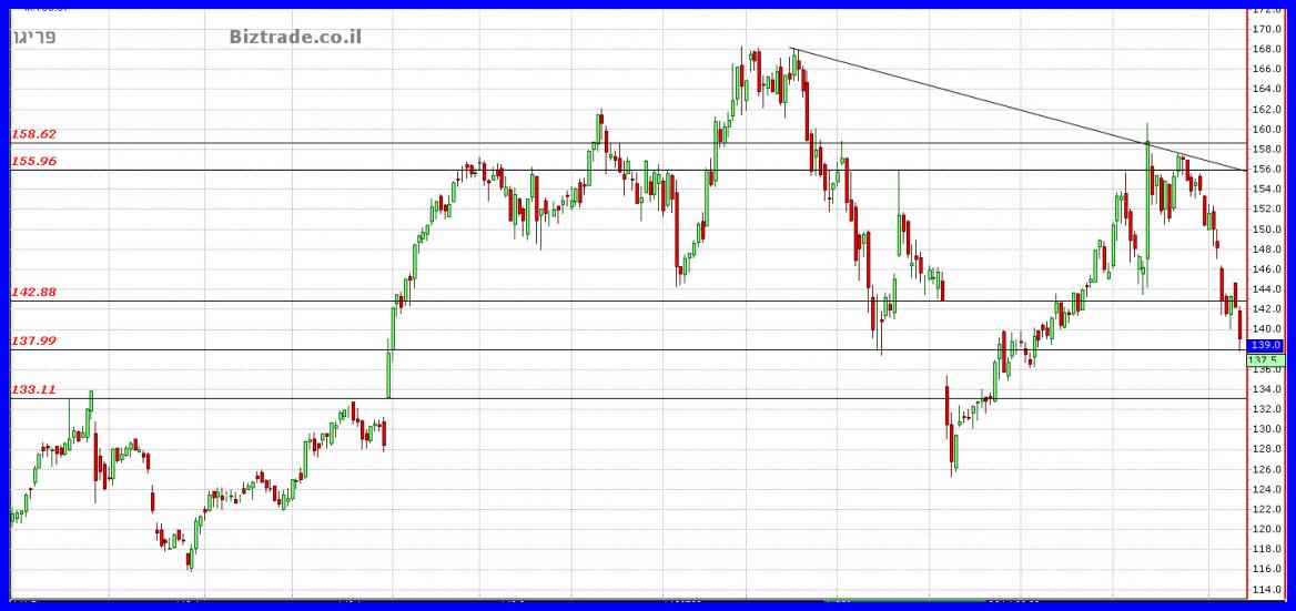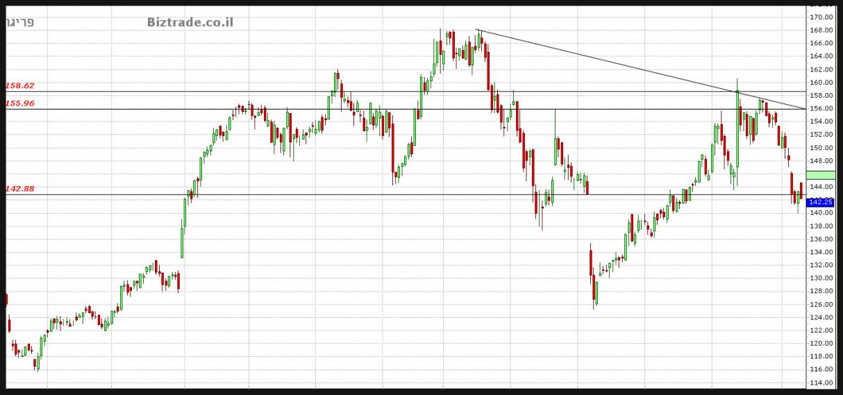 המחיר לא מצליח לסגור מעל הקו החשוב ב 142.88$,