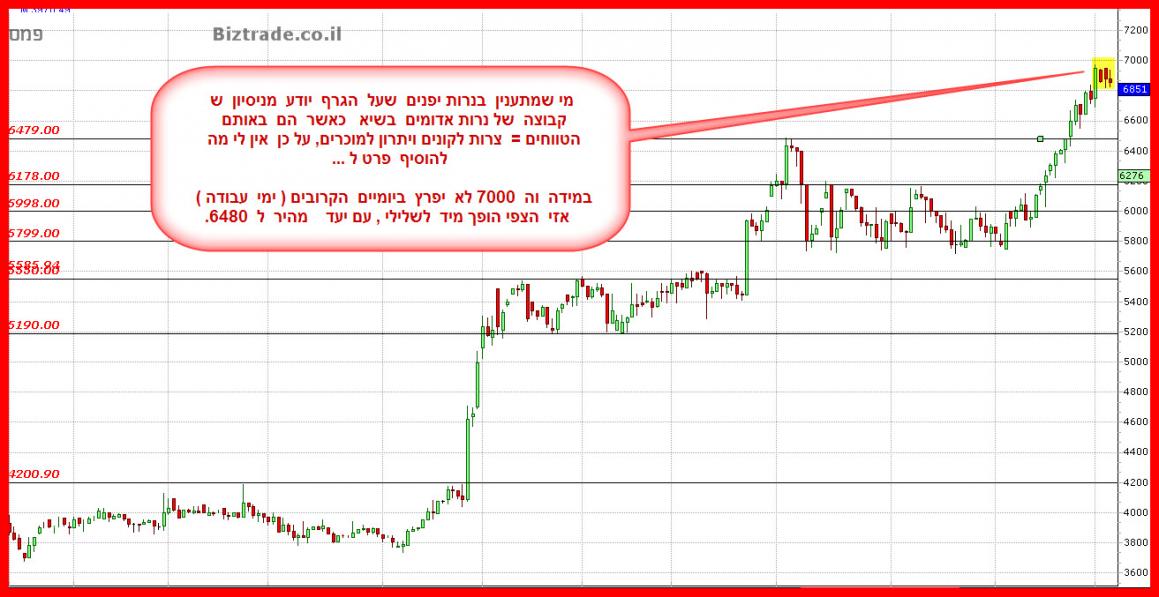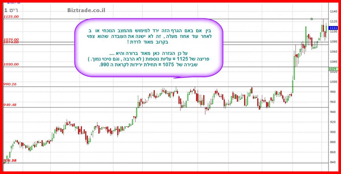 הפתיחה היום מעל ה 710 היא כמובן טובה אבל כול עוד המחיר נמצא בטווח של ה נר עם הצללים הארוכים שלפני 4 ימי מסחר , אזי אין פריצה אבל יציאה מהתחום = המשך עליות , ולכן היום למי שנמצא בחוץ אין כניסה אלא רק בפריצת ה 774.