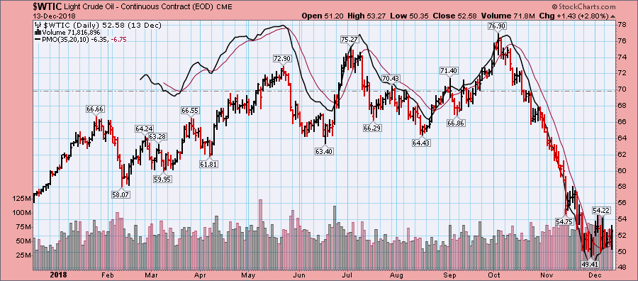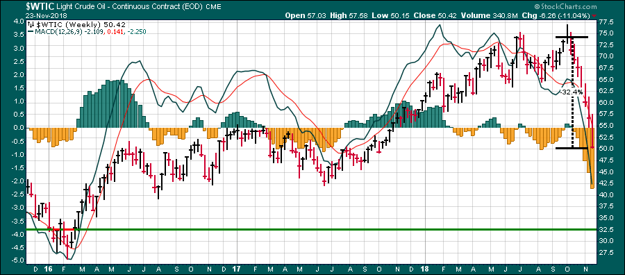 הגרף של הלייט קרוד אויל מראה ירידה מהותית של למעלה מ-30% בחודשיים אולי הירידה הגדולה מאז 2008. ניתן אולי להעריך שכמות המלאים של גז ונפט בשיאם ולכן המחיר צולל. באשר לגרף נראה שהמהלך הצומח במתנד ה-MACD הסתיים וכעת מצפים למהלך מתקן. לפי הניתוח יש איזור תמיכה ברמת שערים שבין 30-34 דולר.