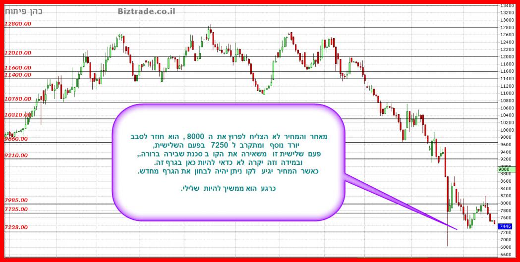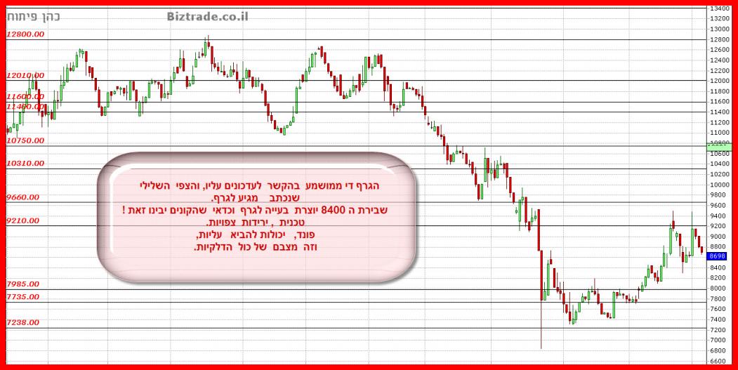 אני יכול לתת יעדים רק מטה, כי איני רואה עליות , וכרגע המחיר בדרכו ל 8400 לאחר שהקו ב 920 הוכיח את עצמו כהתנגדות חזקה.